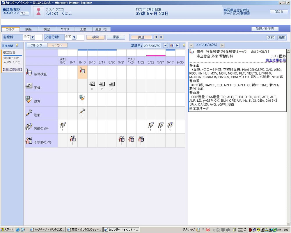 - 施設によって異なりますが、病名、画像、処方、注射、入退院情報等を見ることができます。